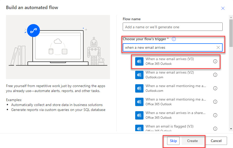 We can write a logic and build simple automation to speed up the process. Here in this post I am going to show the process to build a simple flow to store a specific Email Attachment to SharePoint or One Drive Business.