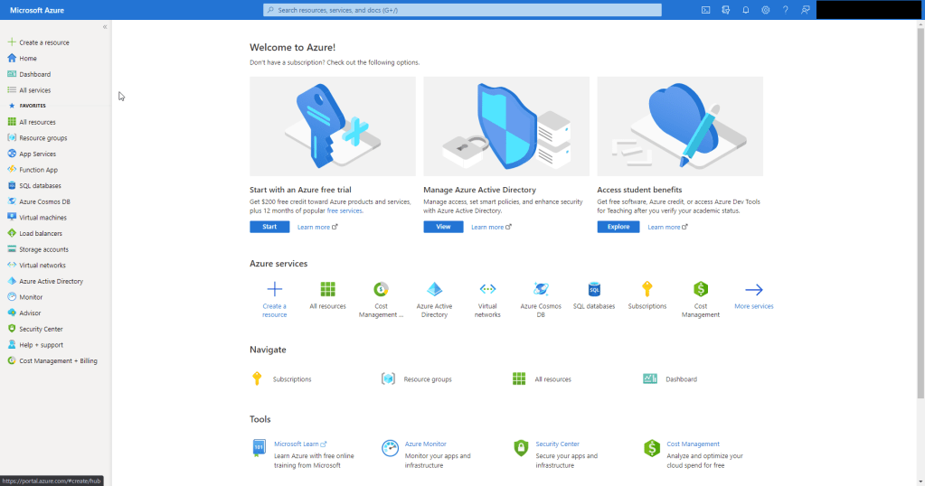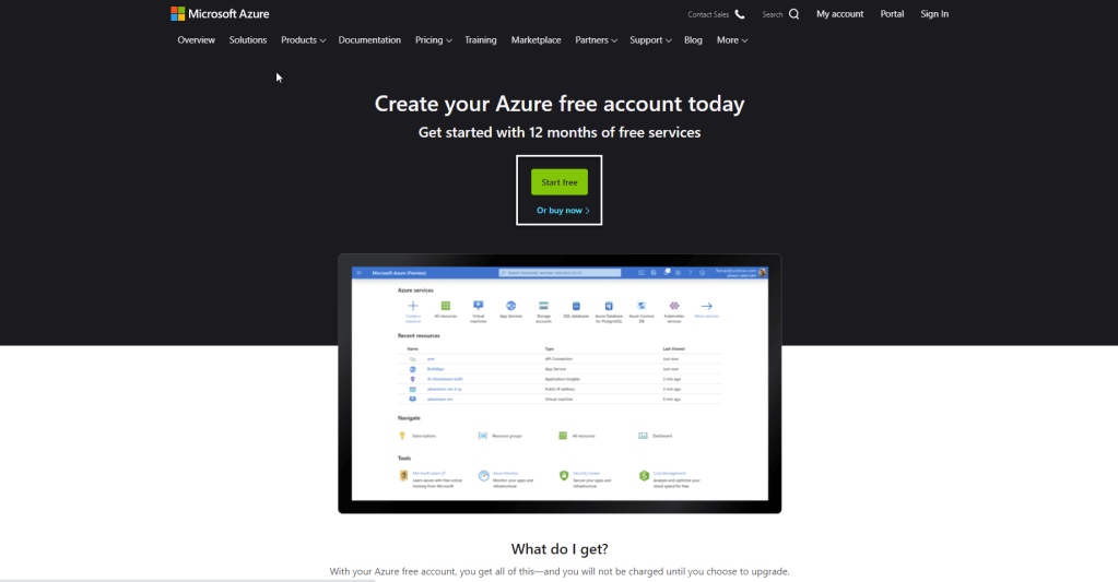 For Subscription / Azur Free trial, you can click on Start or Click on Subscription and new Subscription.