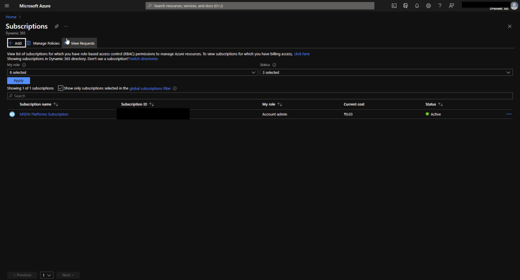 Finally, now you have Azure Subscription.