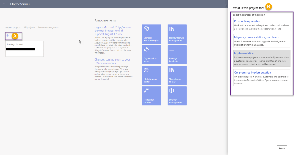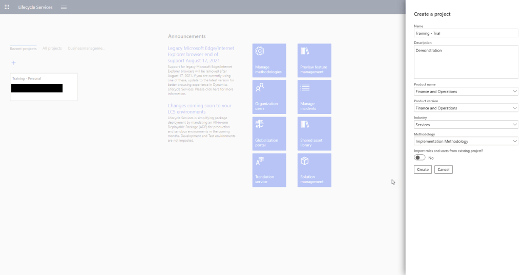 Step: 3 Create Project on LCS