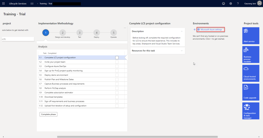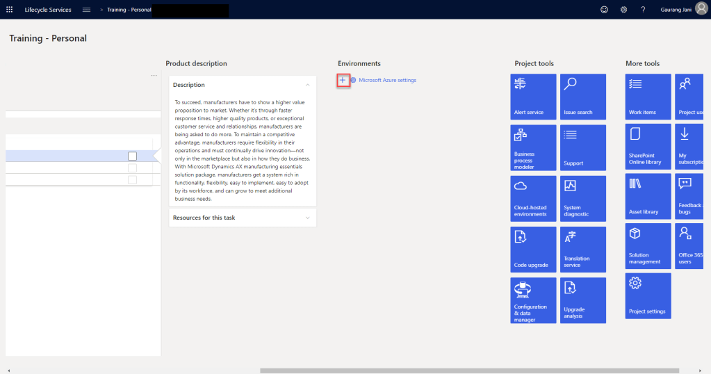 Now go back to LCS Project and Click on “+” under Environment.