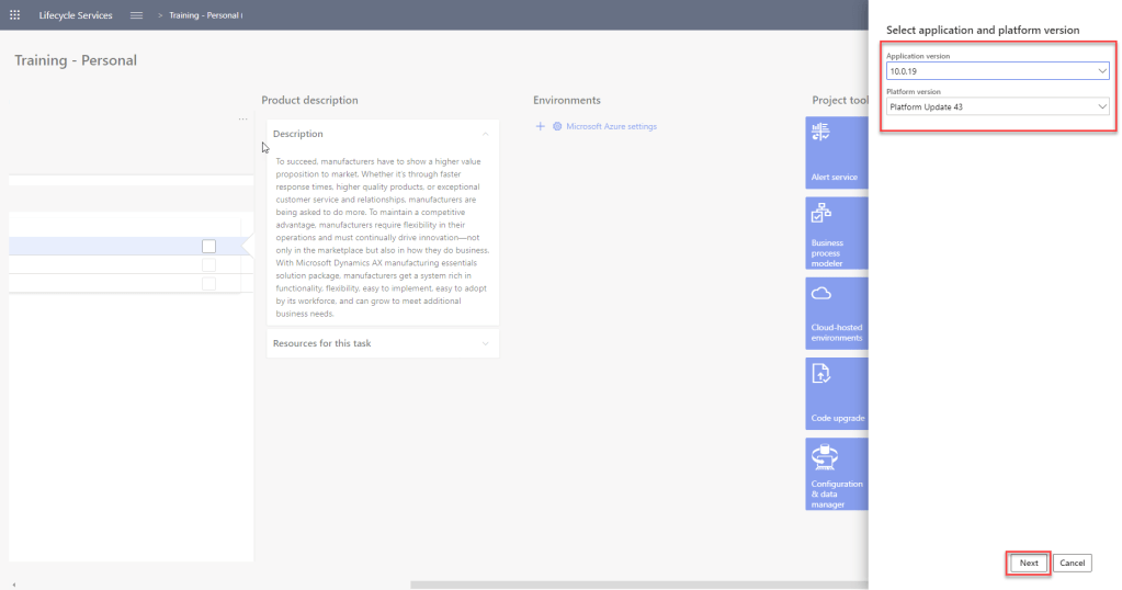 Please choose product name as “Finance and Operation”, Relevant Industry and methodology.