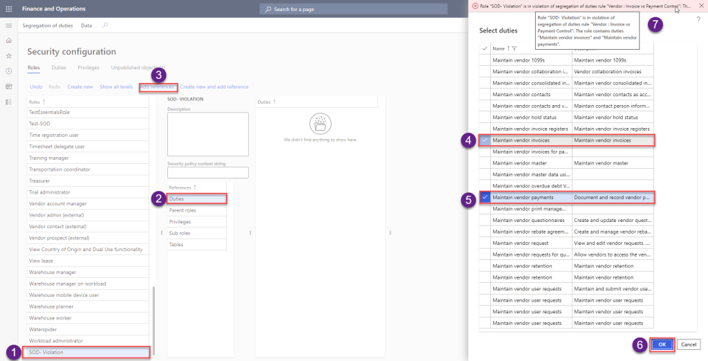 Now once you configure the SOD rule, This will work as “Preventive Control” in Dynamics 365 Finance & Operation.