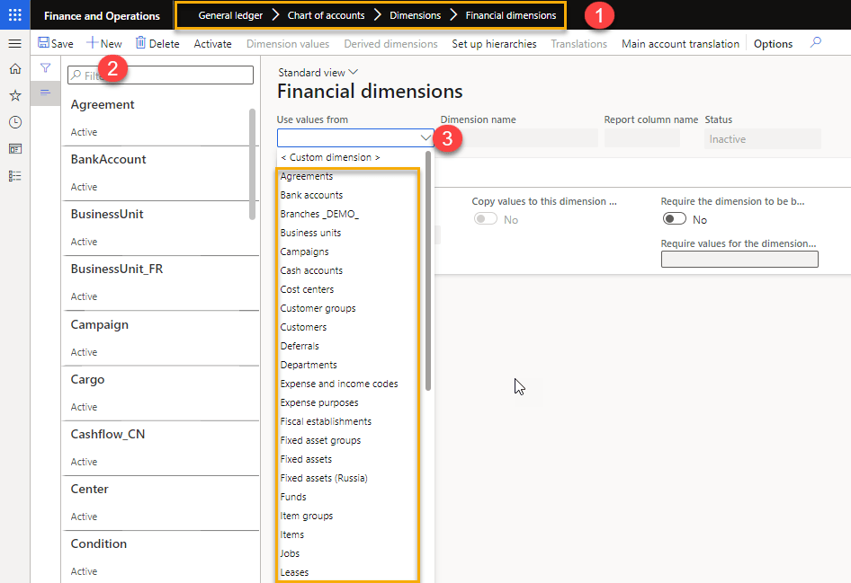 - Path to create financial dimensions