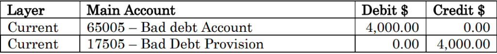 Bad debts provision required in Local laws are $4,000.0 and as per US GAAPs it’s $6,500.00. As in normal accounting (Current Layer) we will post following entry:
