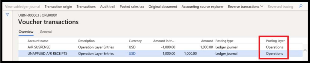 Accounting Voucher Posted in Specific Journal in the Operation Layer: