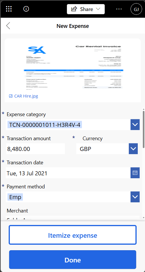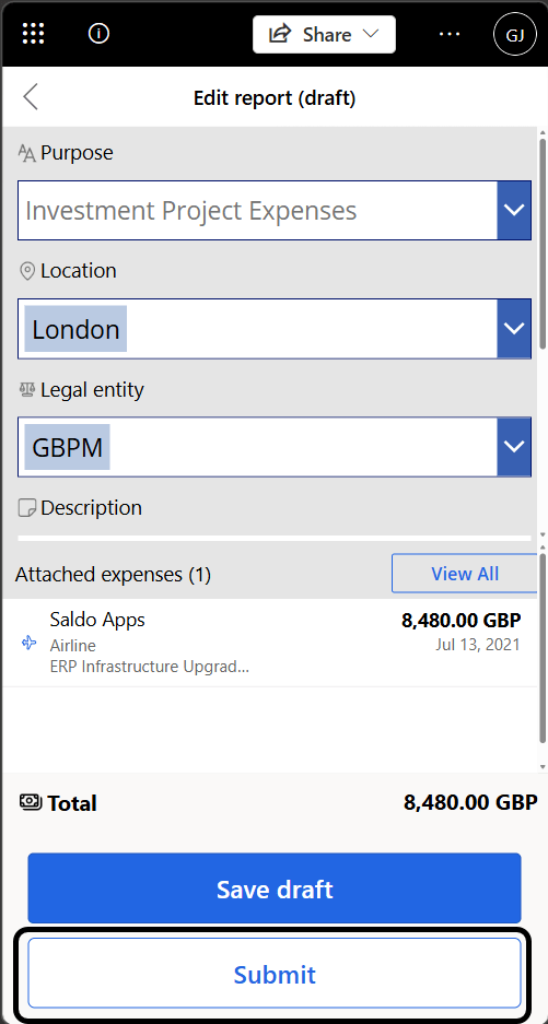 Once Expense is ready in mobile device, add into Expense Report (One report can have more than one Expenses)